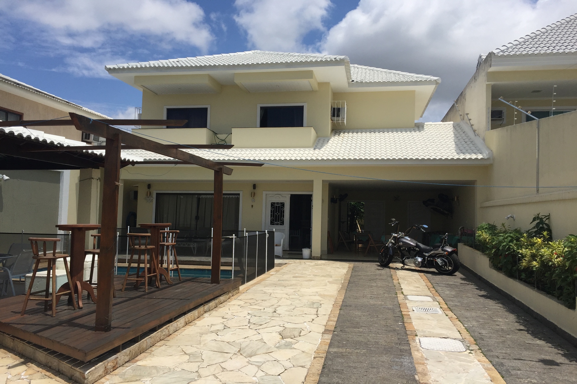 Excelente Casa Duplex no estilo Brezinsk, em terreno de 420m2, alto padrão, num dos melhores condomínios do Recreio (VIVENDAS DO SOL). Residência pronta para morar – 4 quartos – 8 banheiros – Piscina, sauna, estacionamento para 4 veículos – Área gourmet